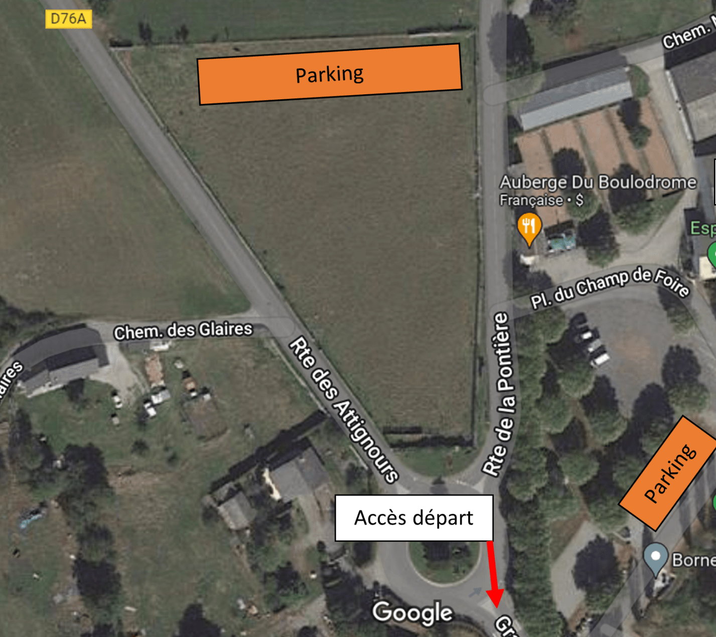 Parking in the town of La Chambre is in a meadow marked in orange on the map on the left. The car park is located at the town's fairground, where the office will be held. Parking in the town centre is very limited due to the small number of spaces and the car parks requisitioned to host the event.